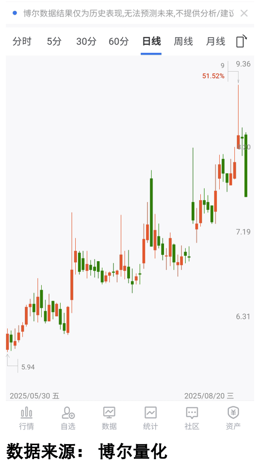 我身边就有朋友遇到过这种情况。他曾经看好一只股票,从2025年5月底到8月底,这只股票三个月涨了50%,表现非常亮眼。但当他回顾自己的操作时,却发现自己很早就被“震”出去了,根本没吃到多少利润。