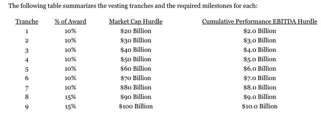 简单计算可知,在总股本新增1.7亿股的背景下,要实现总市值超千亿美元,公司股价得涨到161.7美元。扣掉35.5亿美元的行权成本后,届时科恩的税前总收益将略超240亿美元。而在总股本不变的前提下,科恩的税前收益则能达到近350亿美元。