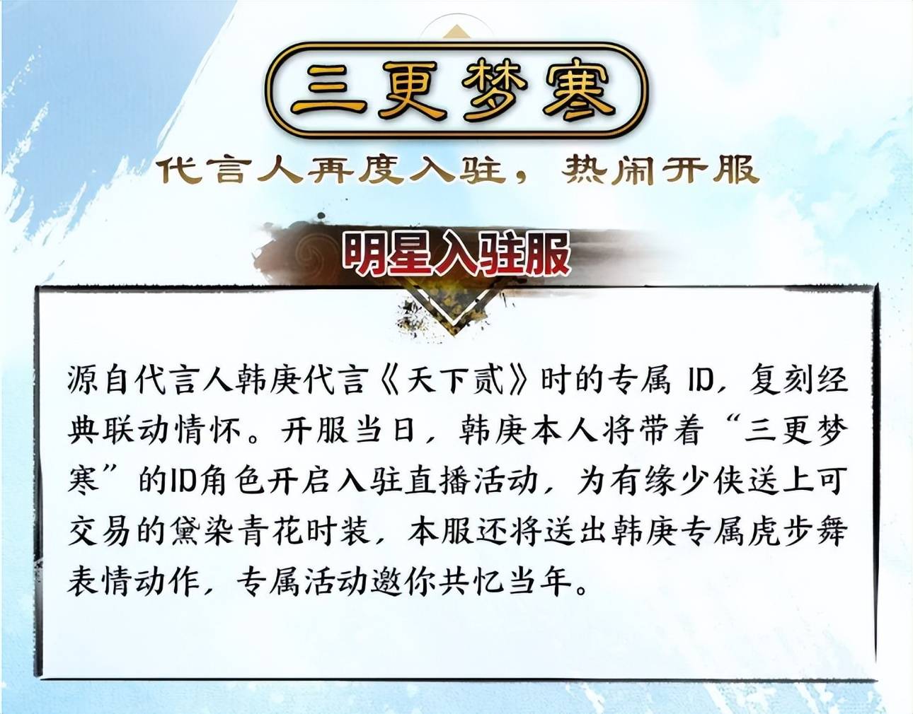 比如选择三更梦寒则可获得韩庚专属虎步舞表情动作,还有机会拿到黛染青花时装!其他诸如大荒老兵和世外桃源也是各具特色,在这里就期待与你相逢啦!返回搜狐,查看更多
