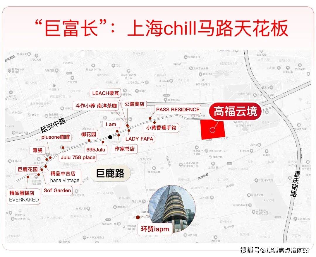 头顶有梧桐的才是真上海”。项目周边 “巨富长”(巨鹿路、富民路、长乐路)直接封神,尤其是楼下的巨鹿路,从常熟路往东走,巨鹿花园洋房、网红花店、瓷器店、公路商店、作家书店(偶遇作家概率超高!)扎堆,连画廊和西餐厅都带着腔调,随手拍都是杂志封面。