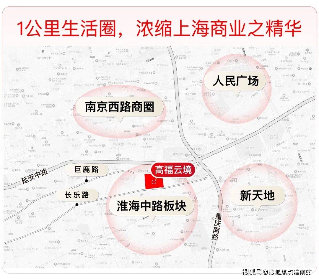 先说地段,高福云境位于黄浦区,巨鹿路与瑞金一路交汇处,门牌号是巨鹿路。项目大板块属于淮海中路,东面就是新天地,北侧约500米就是南京西路商圈。