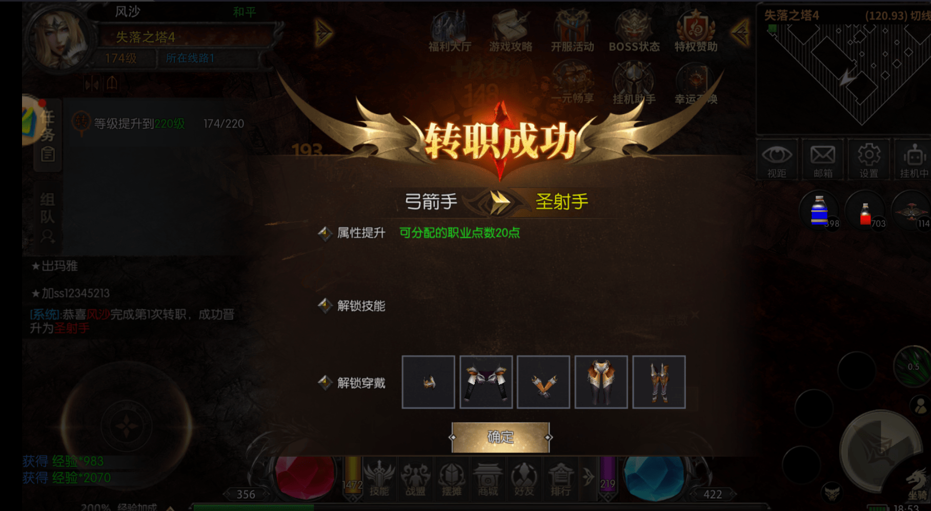 1. 0-30级(1-2小时速通):全程无脑推主线任务,卡级时清理勇者大陆支线级后解锁组队功能,优先组建5人队伍,满5人组队享450%经验加成,凑齐剑、法、弓三职业可触发额外经验buff[1];20级解锁挂机功能,可开启自动挂机刷怪,同时完成主线任务,快速解锁恶魔广场入场资格,为后续冲级铺垫[6]。