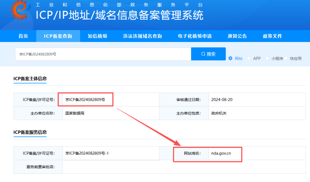 实则通过【ICP/IP地址/域名信息备案管理系统】查询就可知,备案编号“京ICP备2024082809号”所对应的网站是以结尾的域名。