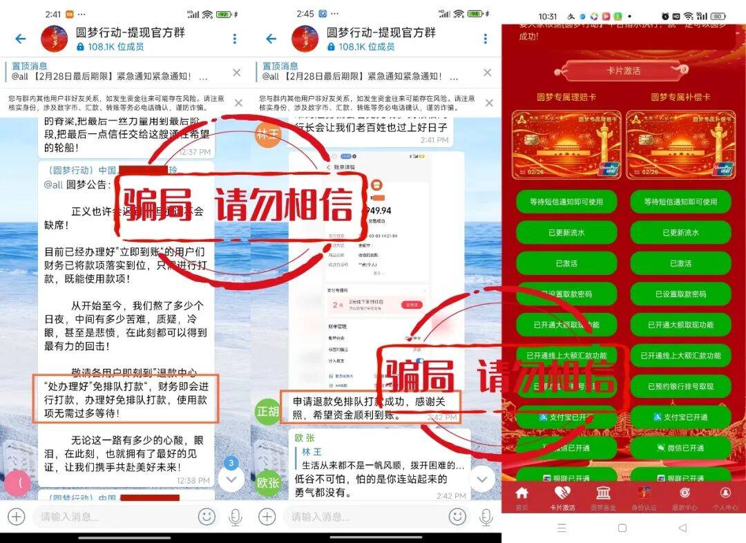 众所周知,“圆梦行动”早已经是官方定性的民族资产解冻诈骗项目,骗子利用此信息,宣称国家要弥补参与者因参与(圆梦行动)的亏损,进行退款。