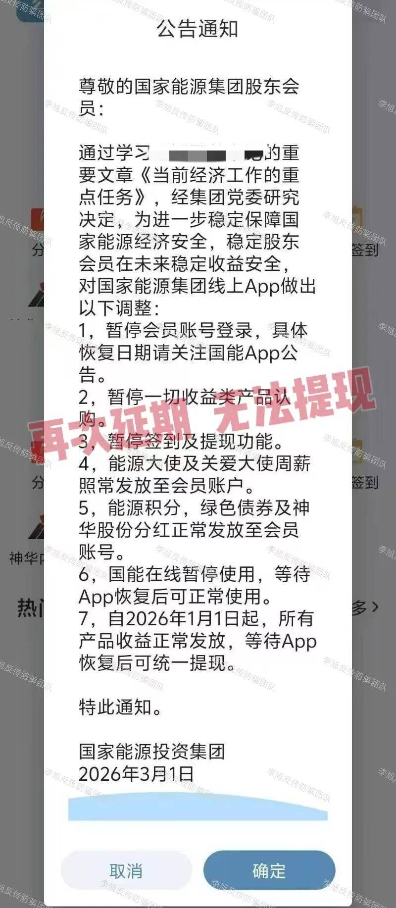 春节前夕,这个项目就以“审核提现”之名忽悠参与者预存资金。根据以往经验,此举已经是项目接近尾声的“信号”,小编也多次发出预警。2月3日,河南省矿山起重机有限公司更是发布打假声明。