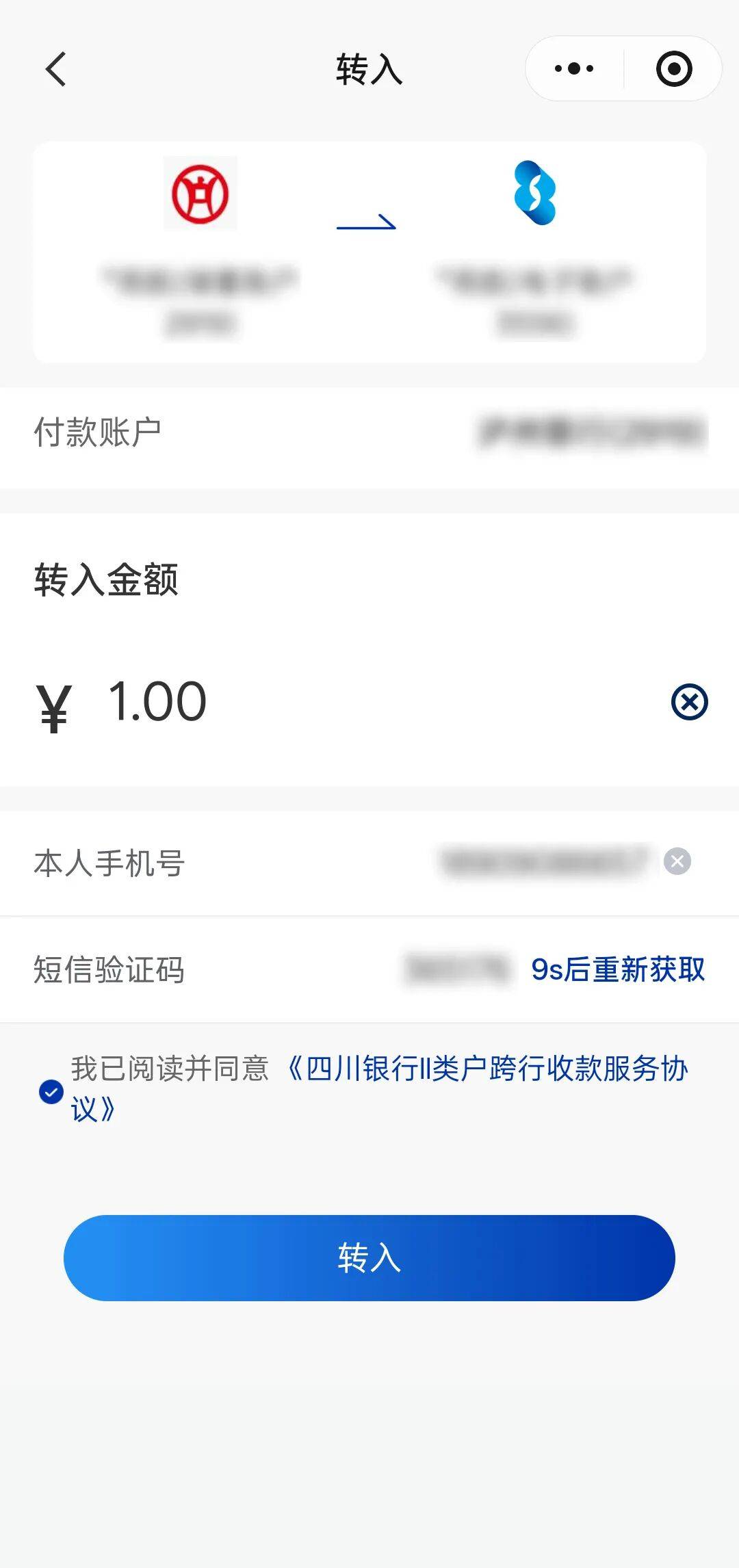 12、需从本人其他银行I类卡向四川银行电子账户转入金额(根据报名赛组,转入金额需大于实付金额)。